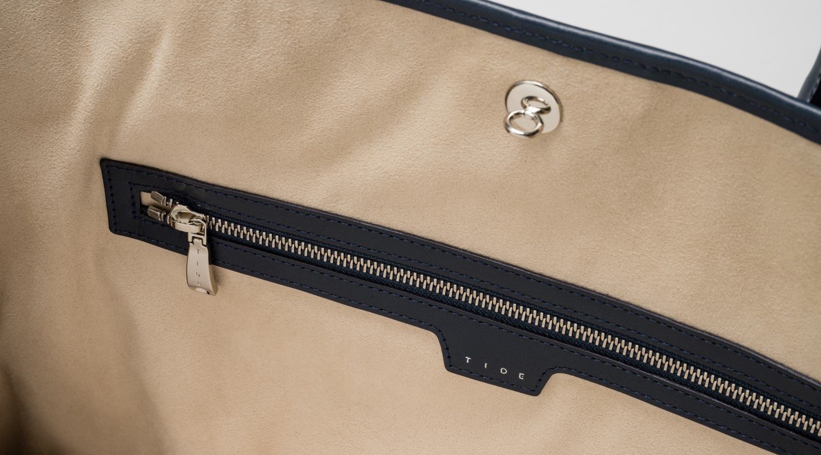 革手袋加工やレザーバッグのOEMなどを扱ってきた、今年で創業70年の「アーバン工芸」。「TIDE(タイド)」は同社の若い世代の職人たちが日本のものづくりの技術を継承すべく、2019年に立ち上げたブランド。“あなたの潮目を変える”ブランドとして、瀬戸内の潮の流れをパッチワークで表現したレザープロダクトを展開している。