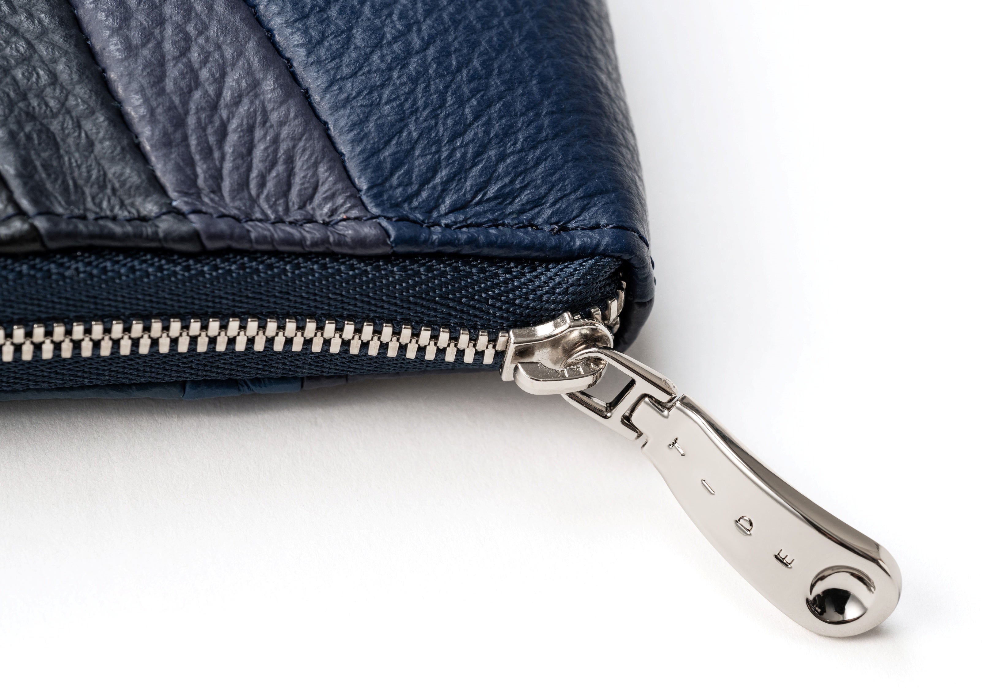 ファスナーは滑らかな開閉が魅力のYKK社「エクセラ」を使用。引手はロゴ入りのオリジナル引手を金型から新たに作成した。