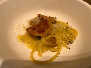 一皿目はトラディショナルなカルボナーラ、二皿目は各店舗のオリジナルのカルボナーラという